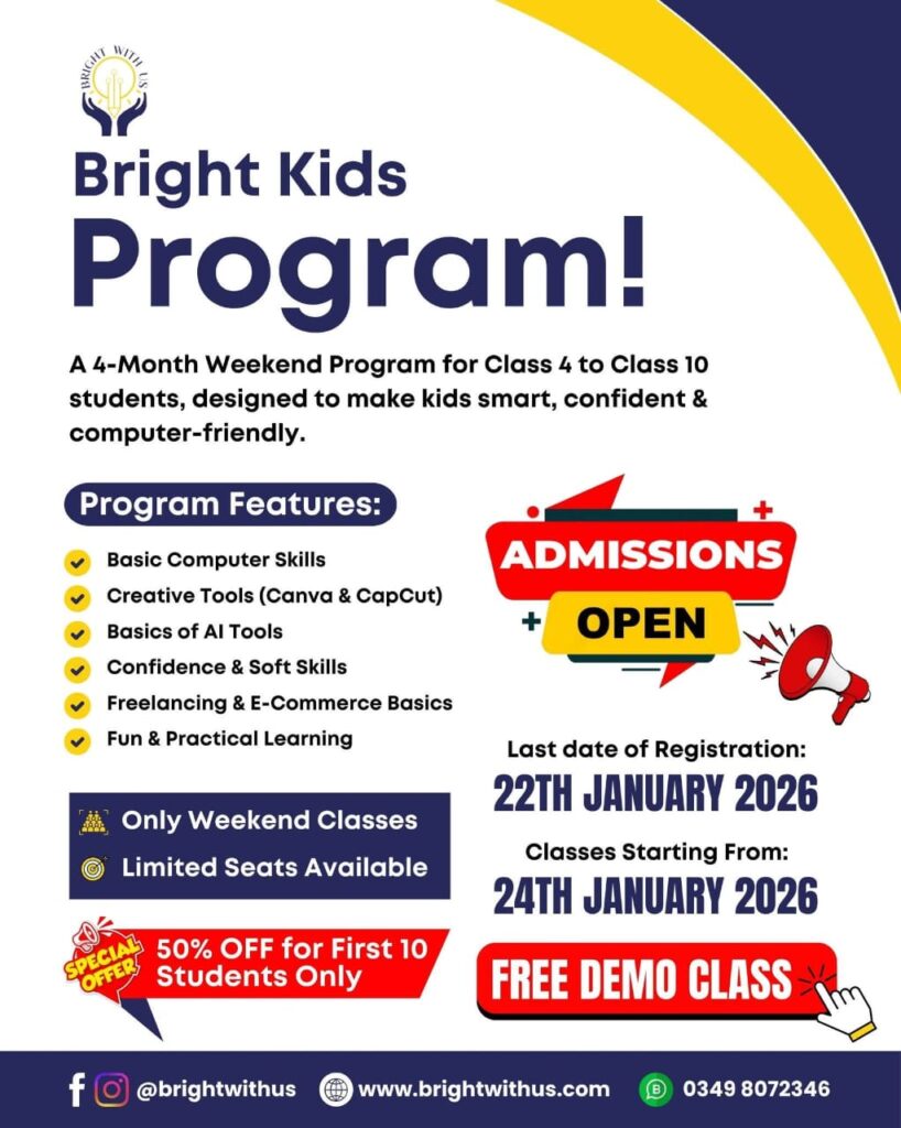 Table of Contents ToggleShort CoursesSmart FreelancingAdobe illustratorAdvance canva courseFacebook Ads CourseArticle Writing (Free)Mega CoursesSEO & Blogging CourseGraphic Designing CourseVideo Editing CourseComputer Couse- Build Essential Digital SkillsBright kids ProgramGraphic DesignVideo EditingFiverr Success CourseGraphic DesignSocial media MarketingShort CoursesSmart Freelancing Register Now See Details Adobe illustrator Register Now See Details Advance canva course Register Now See Details Facebook Ads Course Register Now See Details Article Writing (Free) Register Now See Details Mega CoursesSEO & Blogging Course Register Now See Details Graphic Designing Course Register Now See Details Video Editing Course Register Now See Details Computer Couse- Build Essential Digital Skills Register Now See Details Bright kids Program Register Now See Details Graphic Design Register Now See Details Video Editing Register Now See Details Fiverr Success Course Register Now See Details Graphic Design Register Now See Details Social media Marketing Register Now See Details